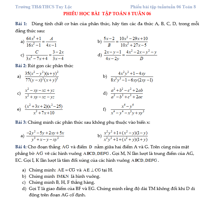 ĐỀ RA TUẦN TRƯỚC