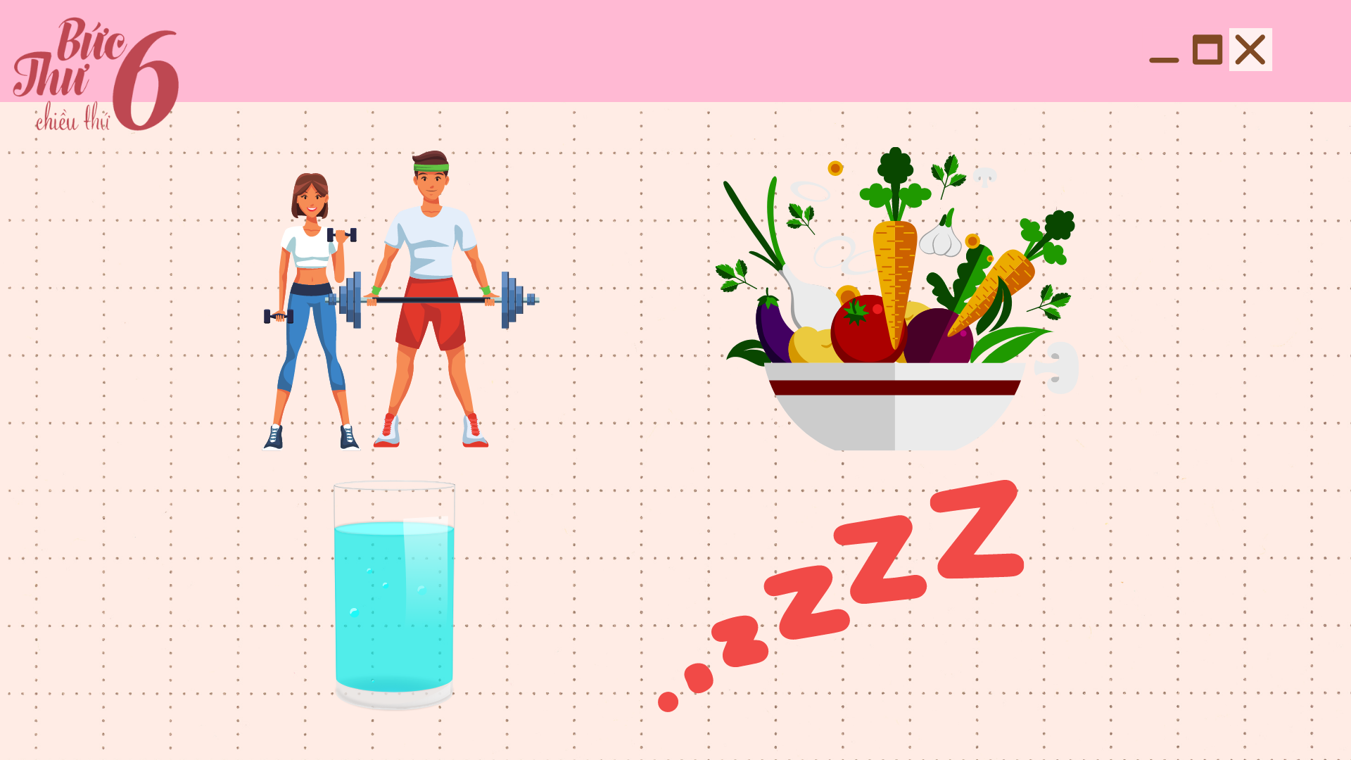 5. Chăm sóc cơ thể Khi nghĩ về việc yêu bản thân, chúng ta thường tập trung vào những thứ giúp cải thiện tinh thần. Tuy nhiên, đừng lãng quên chính cơ thể của bạn nhé. Hãy dành thời gian cho việc tập thể dục, ăn thức ăn lành mạnh, uống đủ nước và đảm bảo chất lượng của giấc ngủ. Một cơ thể khỏe mạnh sẽ giúp chúng mình có nhiều năng lượng thực hiện những điều tuyệt vời phía trước.