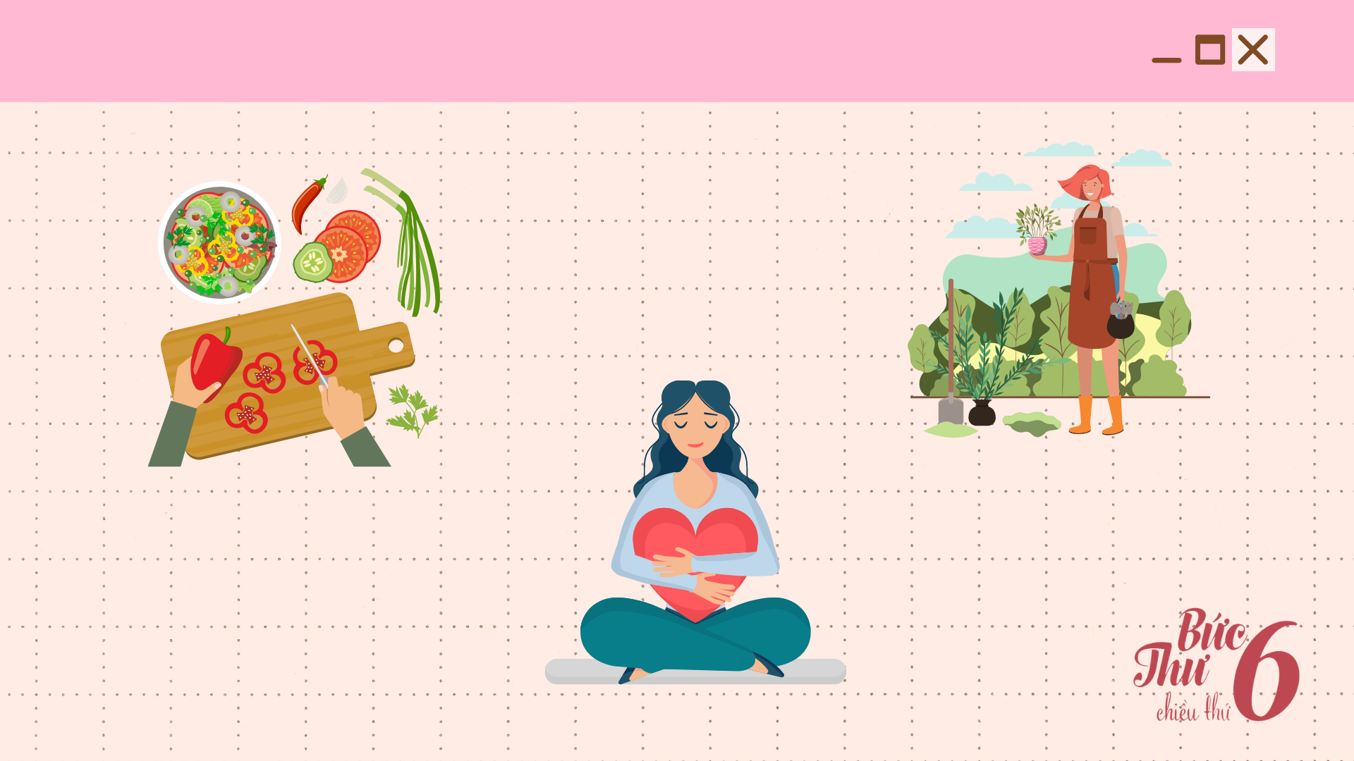 3. Cho bản thân thời gian nghỉ ngơi Dù bận rộn đến đâu bạn hãy dành ít nhất 30 phút mỗi ngày để hoàn toàn thư giãn. Nghỉ ngơi sau những giây phút bận rộn là một cách tuyệt vời để yêu thương và chăm sóc bản thân. Có thể là nấu món ăn bạn thích, đọc sách, chăm sóc cây cối hoặc thiền định...