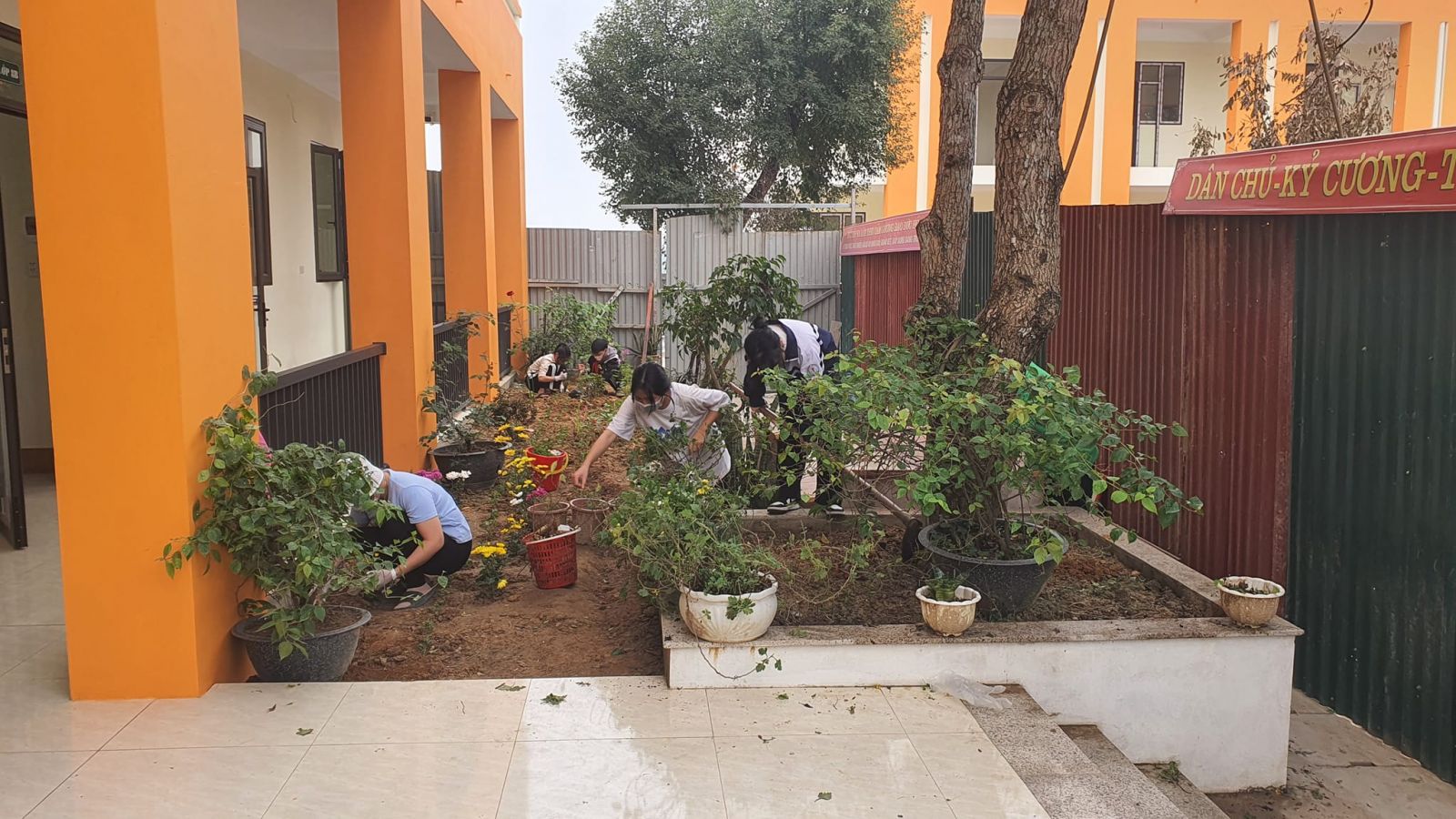 c. Tổ chức chăm sóc bồn hoa, cây cảnh ở cả hai điểm trường.