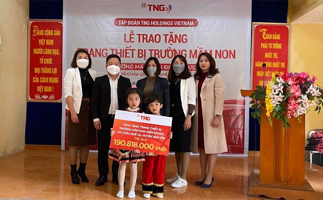 Tập đoàn TNG Holdings Vietnam trao hỗ trợ trang thiết bị dạy và học cho Trường Mầm non xã Châu Quế Hạ, huyện Văn Yên
