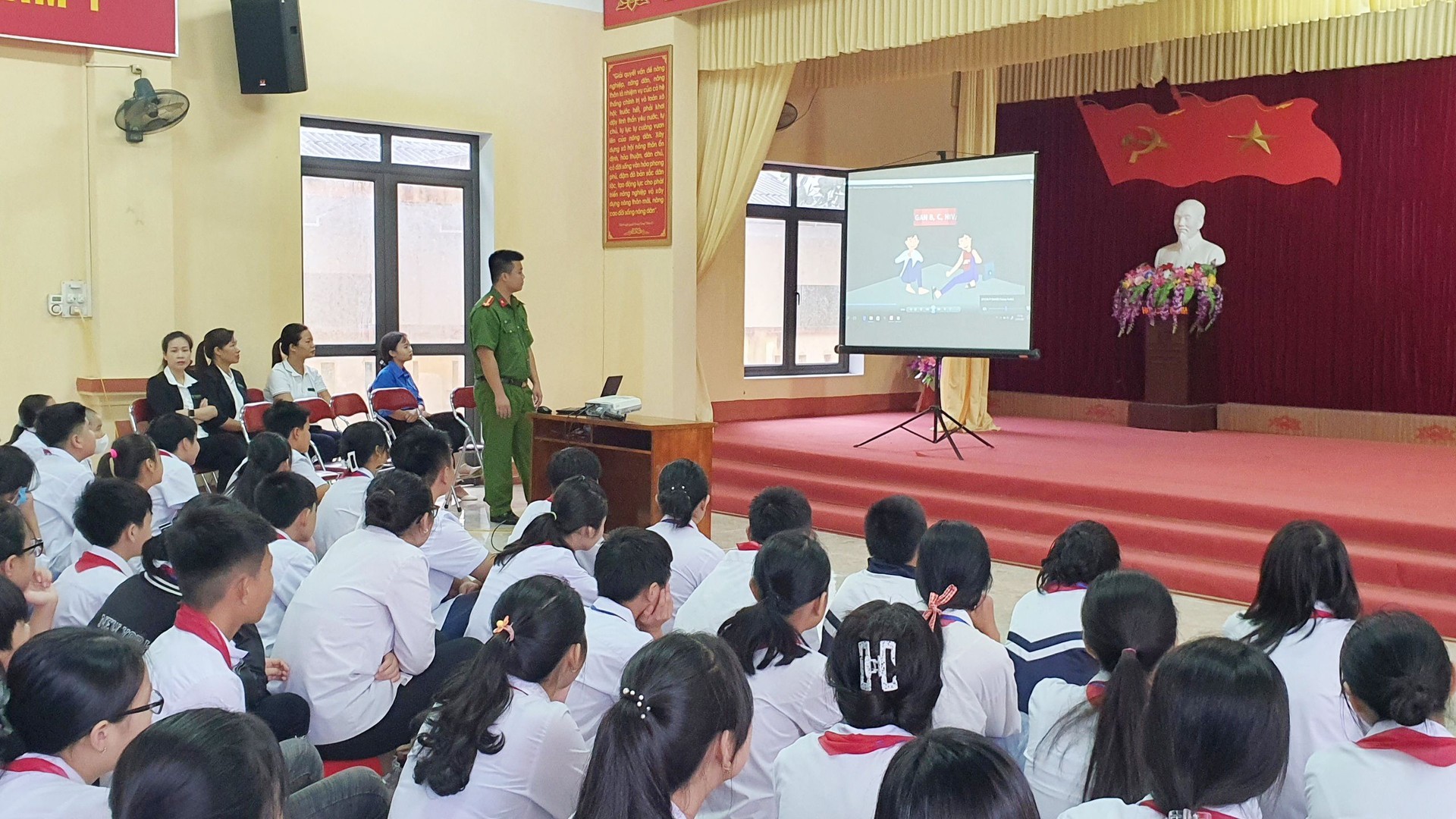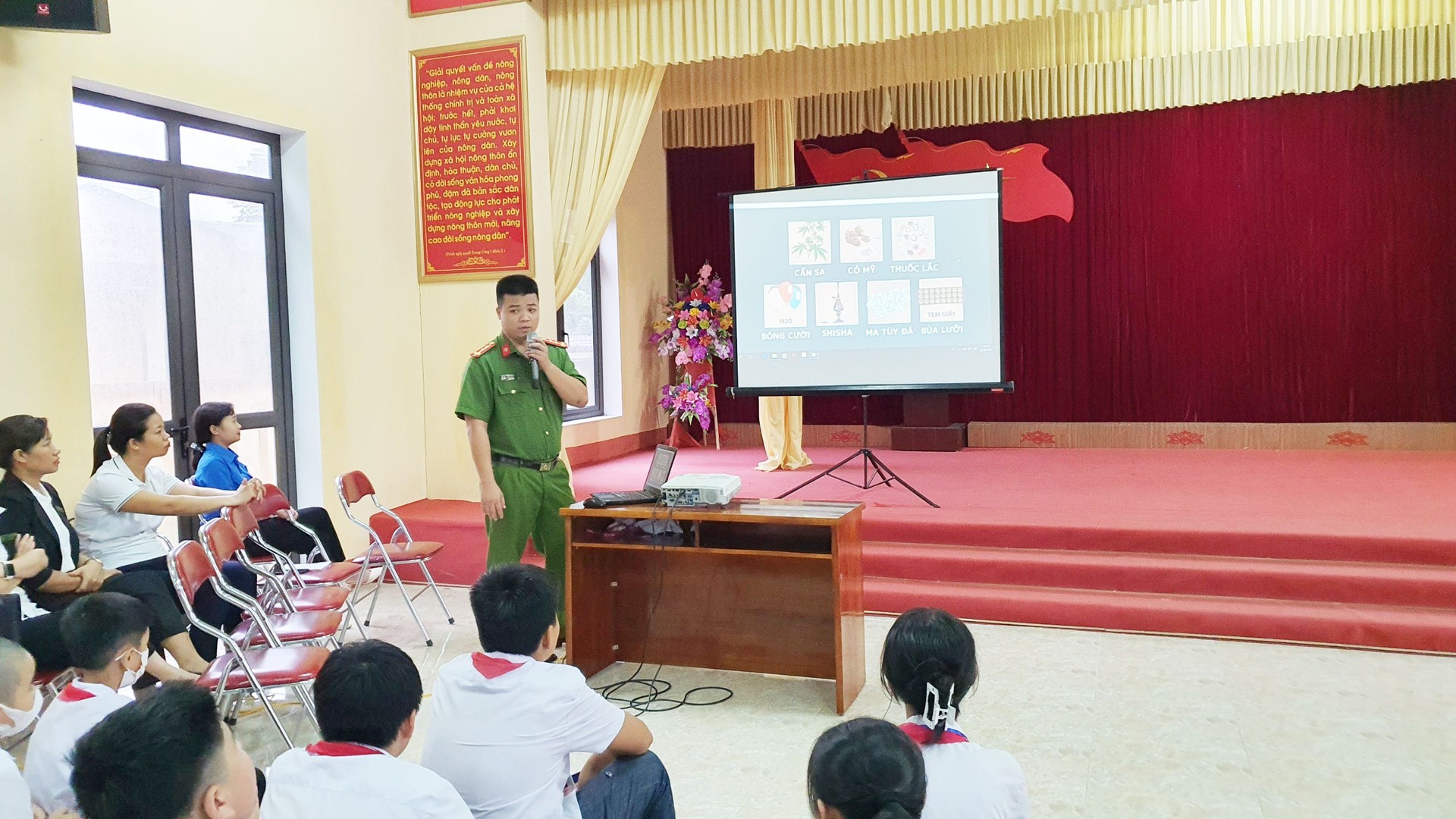 Tại buổi tuyên truyền, các em học sinh đã được nghe Đại uý Trần Minh Long trình bày các nội dung về phòng, chống ma túy và thuốc lá điện tử.